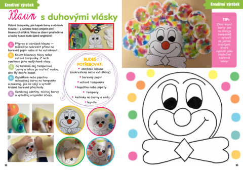 Vatové tamponky, pár kapek barvy a obrázek klauna — a vznikne hravý projekt plný barevných efektů. Vlasy se zbarví před očima a každý klaun bude úplně originální!