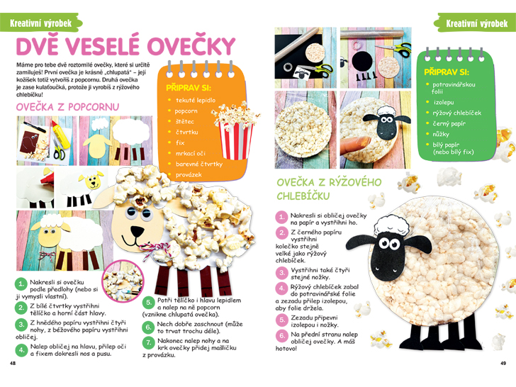 Tvoření může být opravdu nápadité! Víš, že se k němu dá použít třeba popcorn, nebo rýžový chlebíček? Pojď si s námi vyrobit veselé (tak trochu jedlé) ovečky!