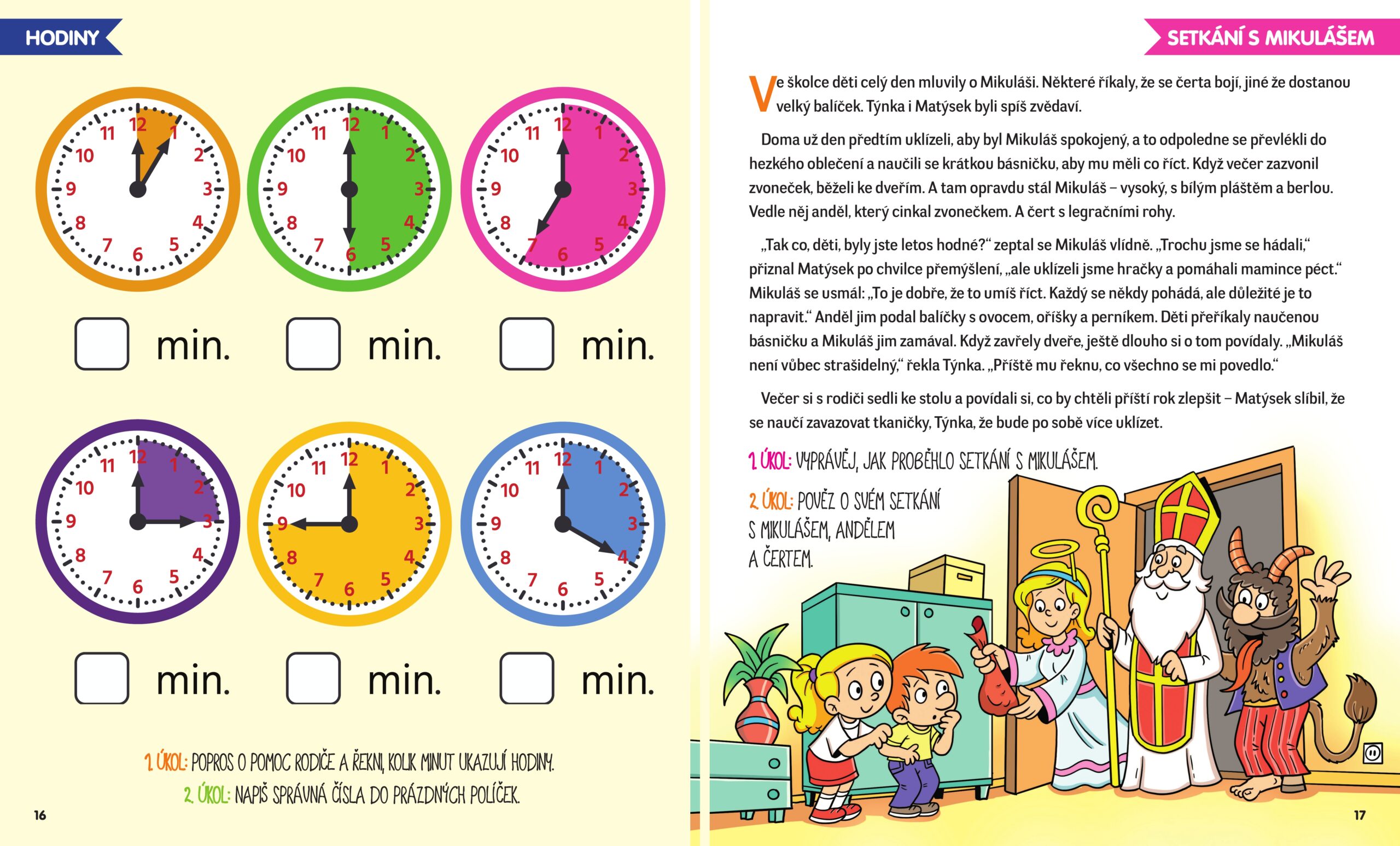 Kolik minut ukazují hodiny? Zkus to zjistit s pomocí rodičů a vyřeš zábavné úkoly, které ti pomůžou získat nové dovednosti. A jak Týnka s Matýskem zvládnou setkání s Mikulášem, andílkem a čertem? To se dozvíš v novém příběhu!