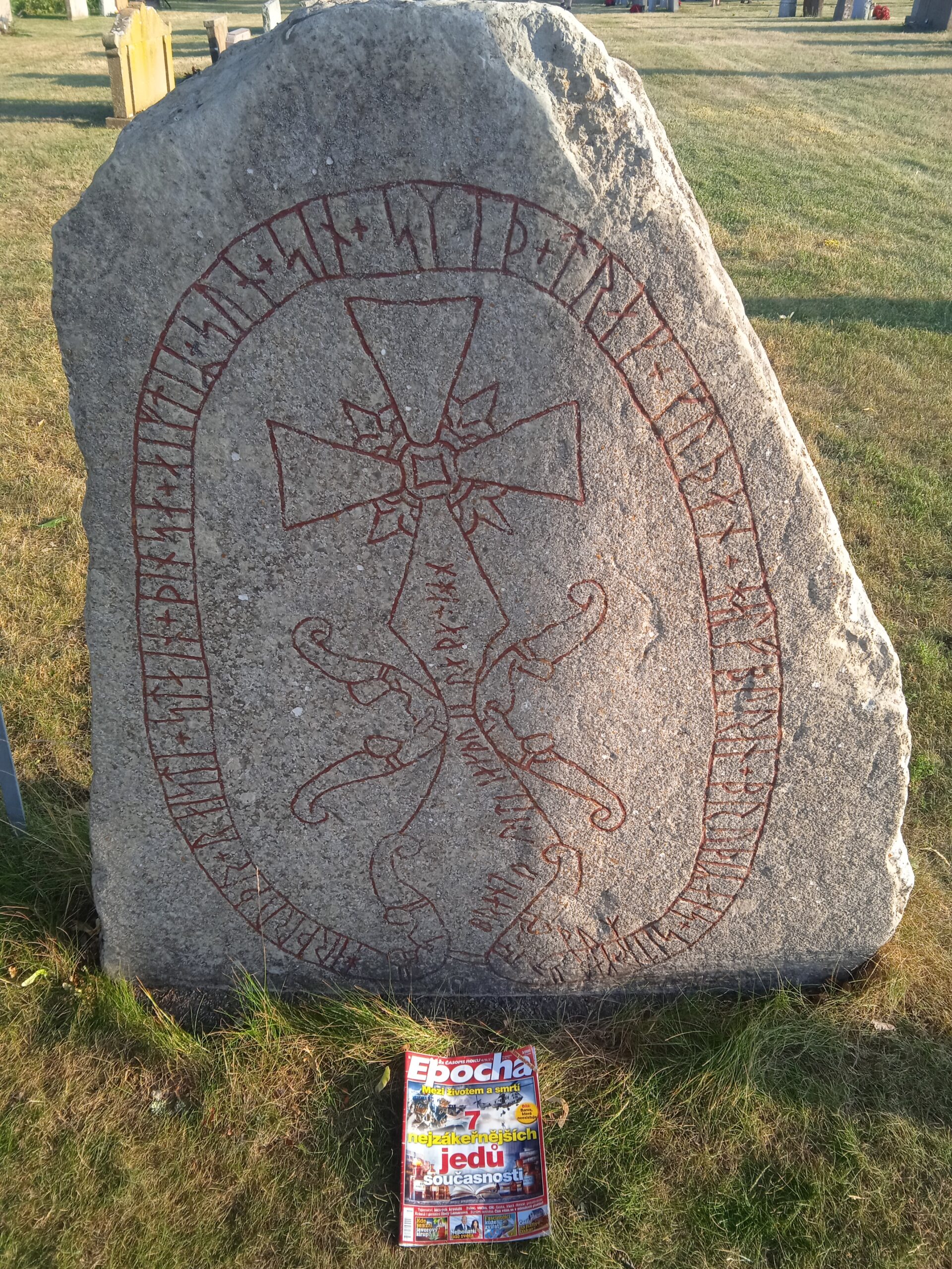 EPOCHA se ráda vydává po stopách všemožných zákoutí historie. Runové kameny nejsou výjimkou. Jeden takový objevila čtenářka Jana v realitě a zároveň i v čísle, které si sbalila sebou na cesty po jihu Švédska. A tak nám u něj časopis pohotově vyfotila.