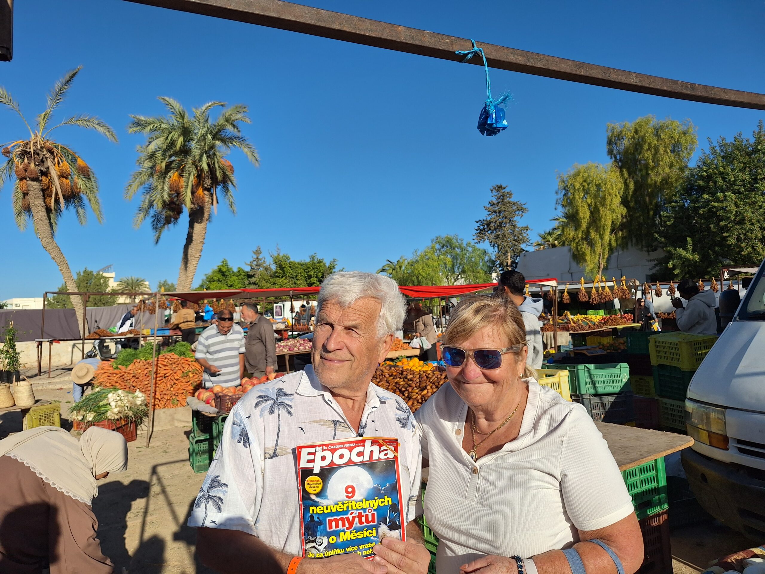 „Když jsme měli dost slunění, navštívili jsme tržiště,“ přibližuje Jiřina svou dovolenou na Džerbě. Společnost mezi stánky s kořením, zeleninou, ovocem a keramikou ji dělal manžel Luděk. Na největším ostrově severní Afriky, který mimochodem patří Tunisku, nechyběl ani jejich oblíbený časopis.
