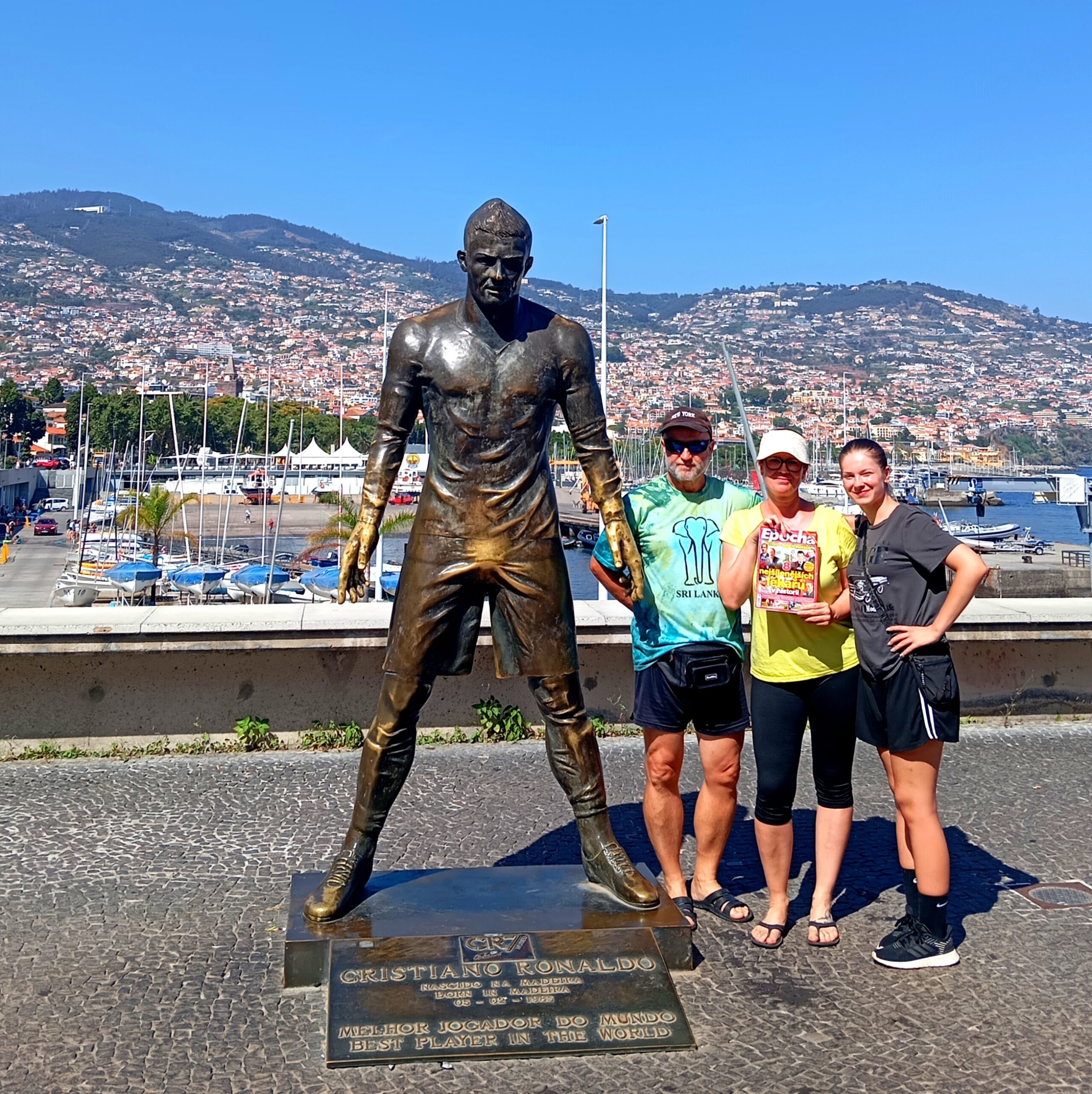 Nejdříve Gabriela, Zdeněk a Laura navštívili skanzen, kde zhlédli původní madeirské domečky. Další den obdivovali krásu Funchalu a právě v hlavním městě portugalského ostrůvku je přivítal nejslavnější rodák. Během focení zaujal Cristiano Ronaldo (*1985) i svůj typický postoj.