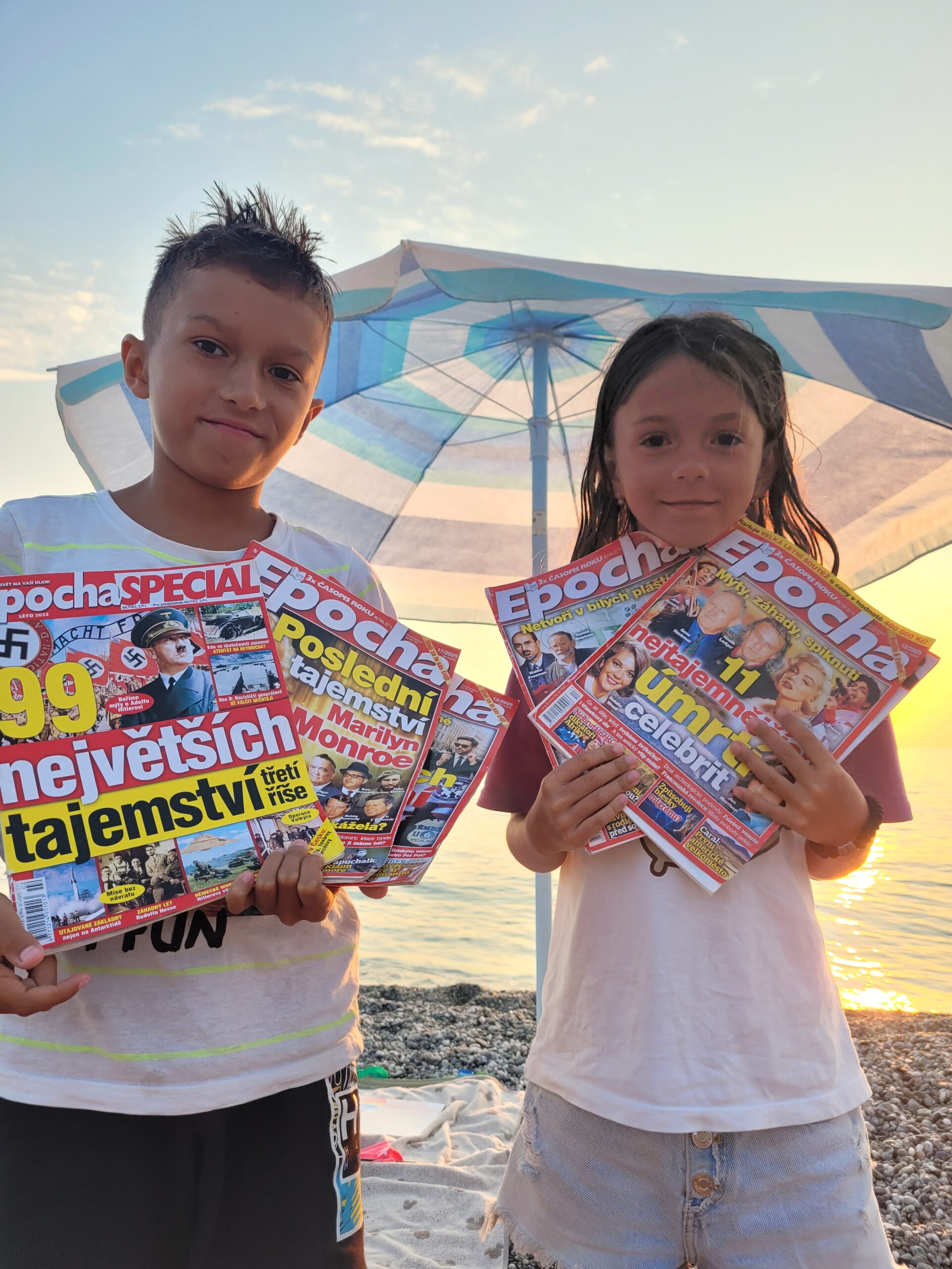 Základ úspěšné dovolené? Hezké počasí, osvěžující mořská voda a hlavně zásoba kvalitního čtiva. Ideální konstelaci zažil Hugo se sestrou Belindou, ve svém tiskovém arzenálu měli dokonce EPOCHU Speciál. Stránkami časopisů listovali nedaleko kalábrijského městečka Belmonte Calabro.